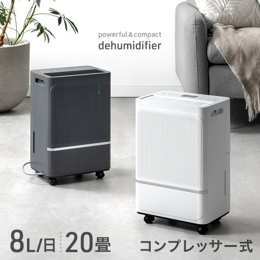 ~ 送料無料 10,999円(税込)現在の価格 送料無料 10,999円(税込)コンプレッサー式 除湿機 8L/日 20畳 コンパクト 衣類乾燥 キャスター付き 省エネ 除湿器〔79800021〕