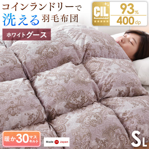 ~ 送料無料 29,999円(税込)現在の価格 送料無料 29,999円(税込)[シングル] コインランドリーで洗える羽毛布団 ホワイトグースダウン93% CILゴールドラベル 30マス立体キルト 400dp以上 かさ高165mm以上 7年保証 日本製 ウォッシャブル 〔39100153〕