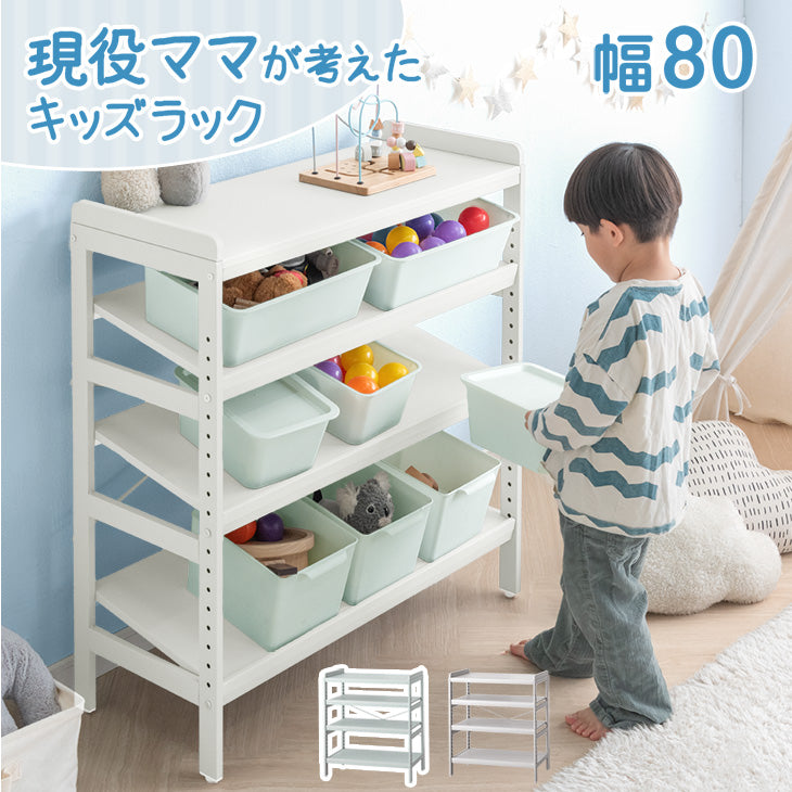 おはようございます。スタッフのともです。今回は「現役ママが考えたスチールキッズラック」をご紹介いたします。こちらの商品は、お子様の成長や生活の変化に合わせて使える、優しいデザインのラックです。棚板は、ワンタッチで簡単に3段階の角度調整をすることができ、斜め置きにすることで、小さいお子様でもおもちゃを取り出しやすくなります。また、20段階の高さ調整も可能なので、お子様の身長や置くものにぴったりフィット!ママの理想を形にした当店のキッズラック、是非チェックしてみてください!
