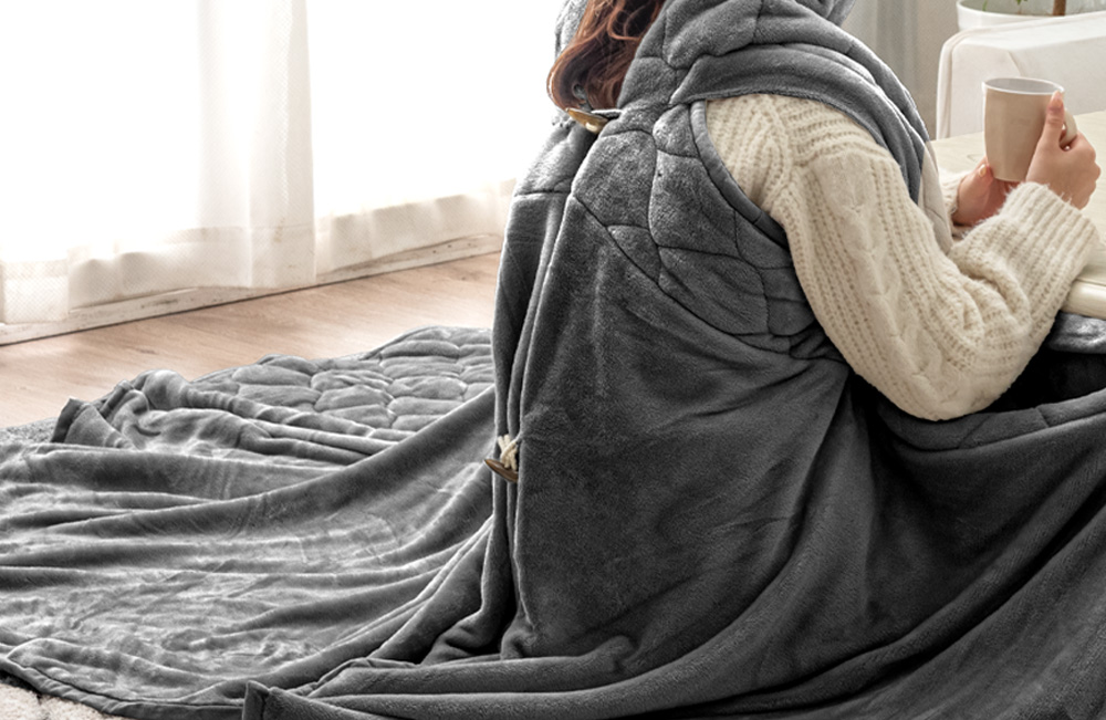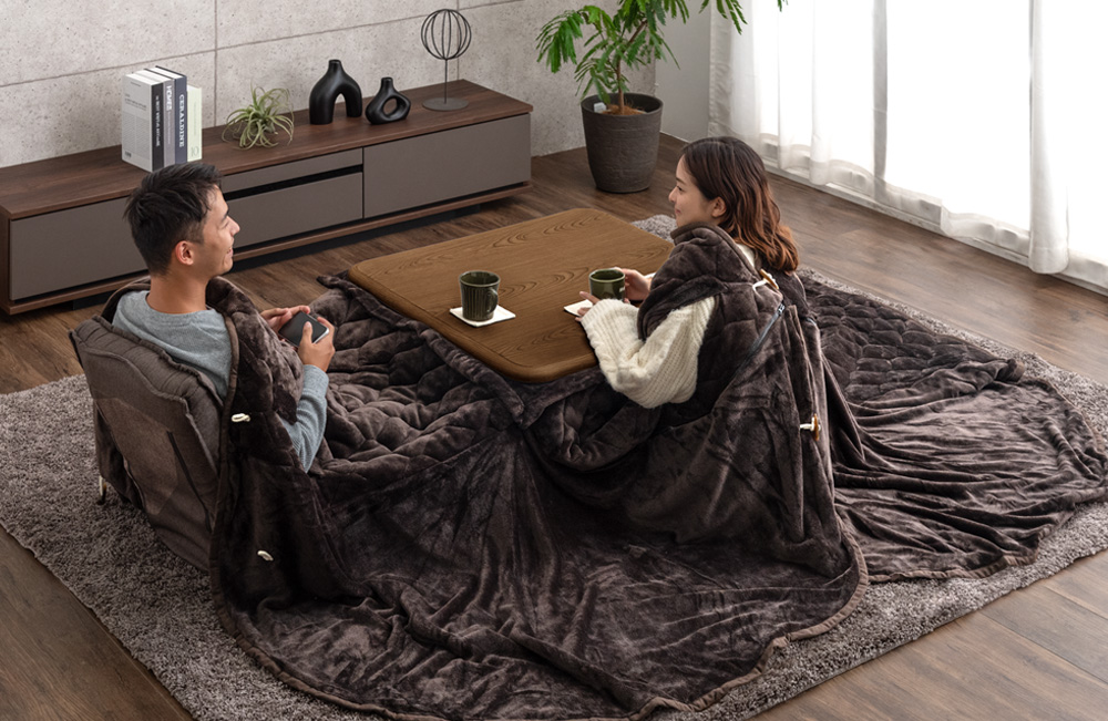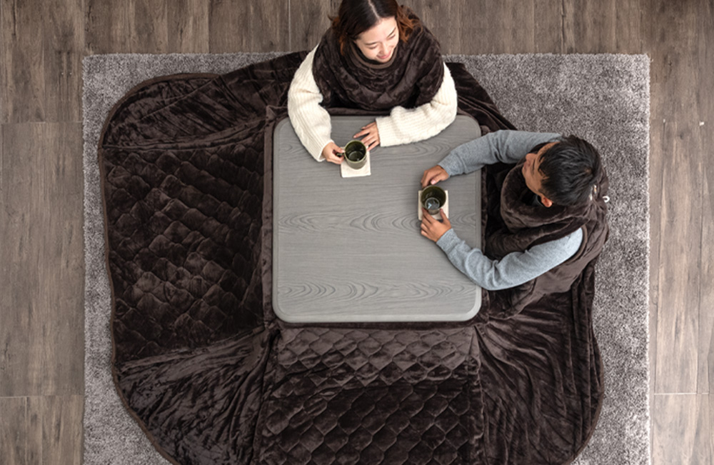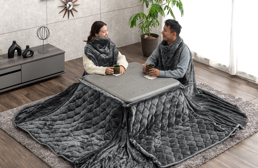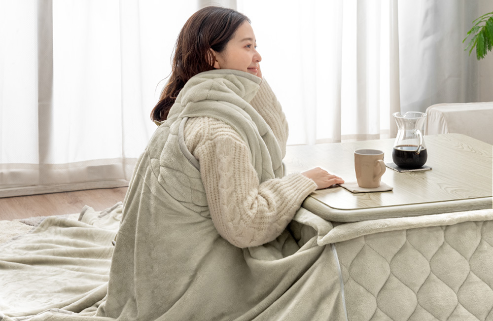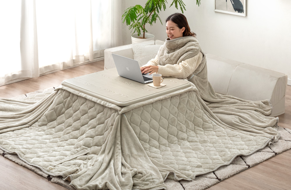 こたつ布団でまとって背中まで暖か“着るこたつ掛け布団”新登場