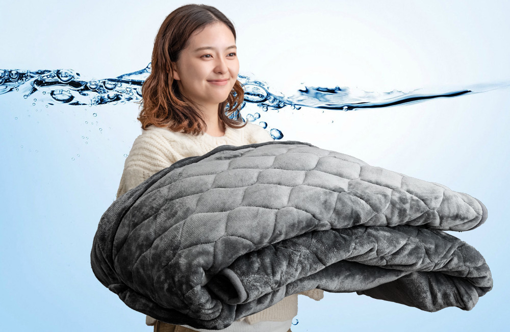 本製品には、抗菌防臭加工を施しており、熱が籠り蒸れやすいこたつでも、汗や皮脂での嫌なニオイや菌の発生を抑えられます。また、ご自宅の洗濯機で丸洗い可能な為、気軽に洗濯して清潔にご使用いただけます。さらに、生地には洗濯耐久性に優れた中綿を使用しており、洗った後の中綿のヨレやごわつき・へたりを軽減し、長期間快適な使い心地を実感いただけます。
