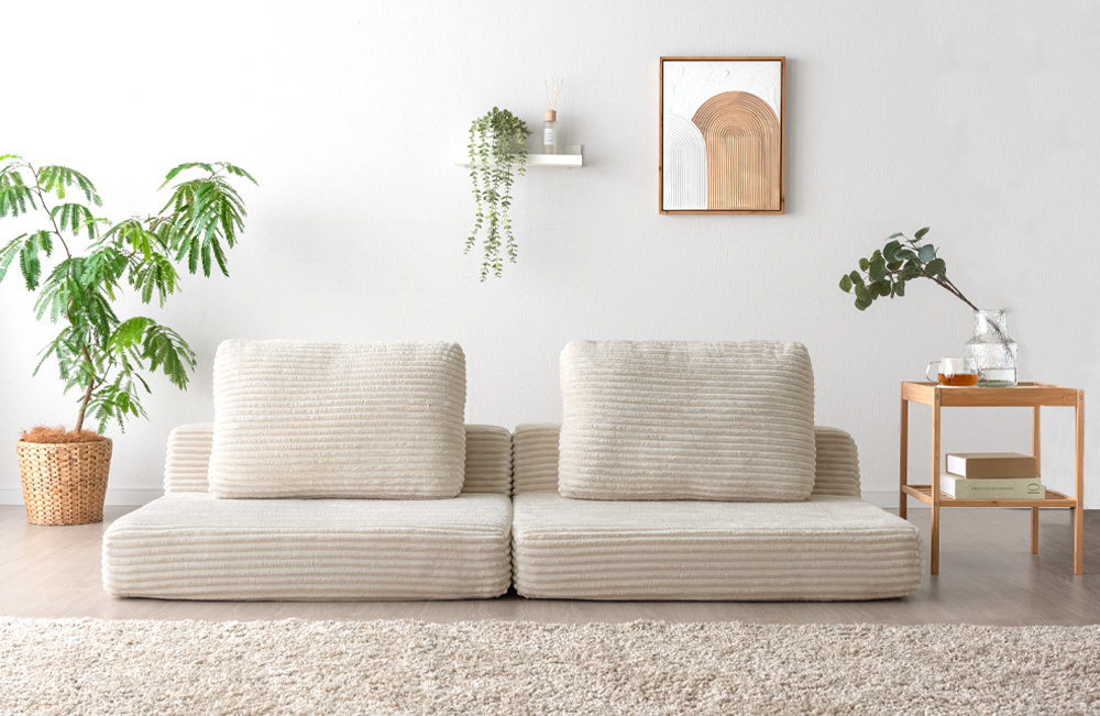 当社では、新生活を迎える方に「受け取りやすく、使い続けやすいソファを、より手に取りやすい価格で届けたい」その想いから、この“圧縮梱包ソファ”シリーズは誕生しました。