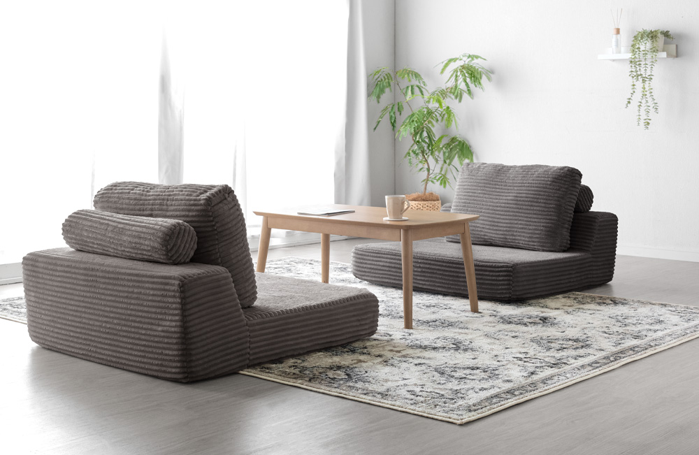 ソファ同士をくっつけて二人掛けとして使ったり、離して一人掛けソファのように使ったり、対面スタイルやコーナー配置など、レイアウトの自由度も高い点が特徴です。