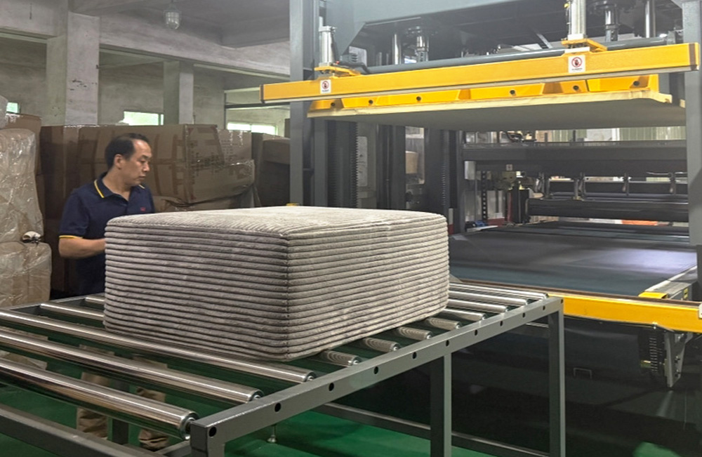 (画像:圧縮梱包中のソファ)