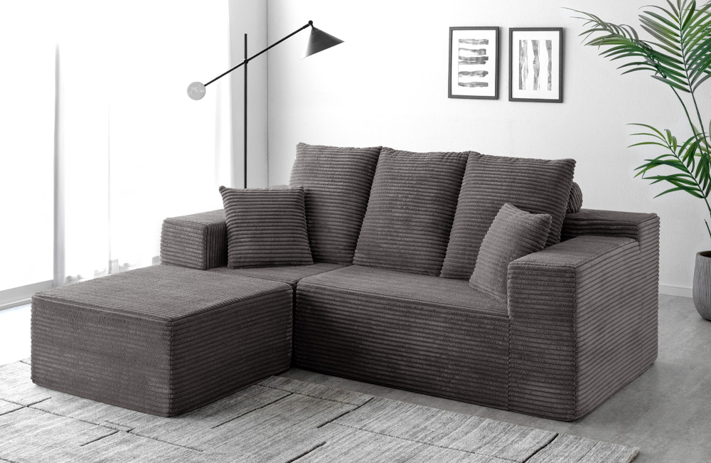 本製品は、直線的で洗練されたフォルムに、コーデュロイ特有のあたたかみを合わせた、ホテルライクなモダンデザインが魅力です。