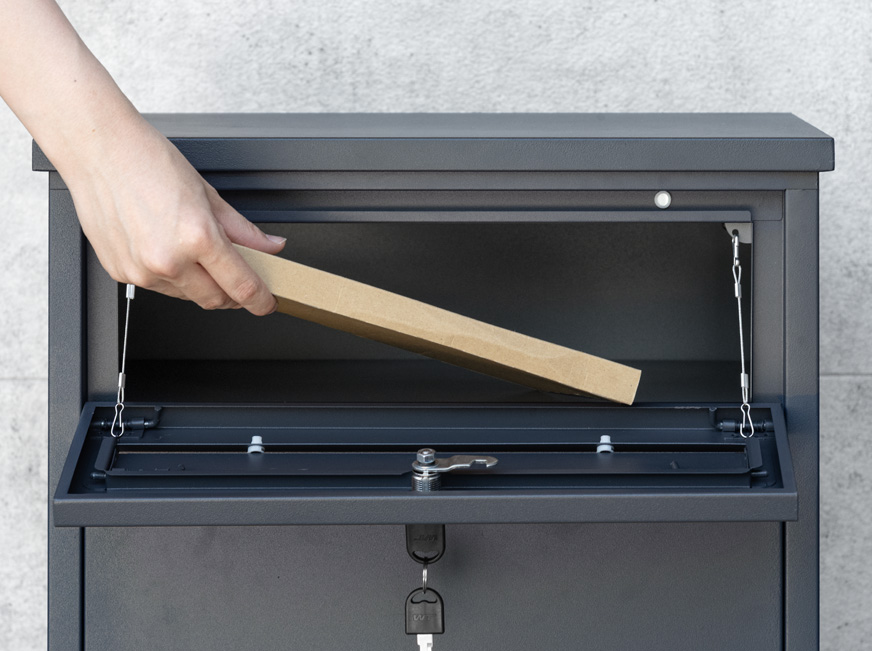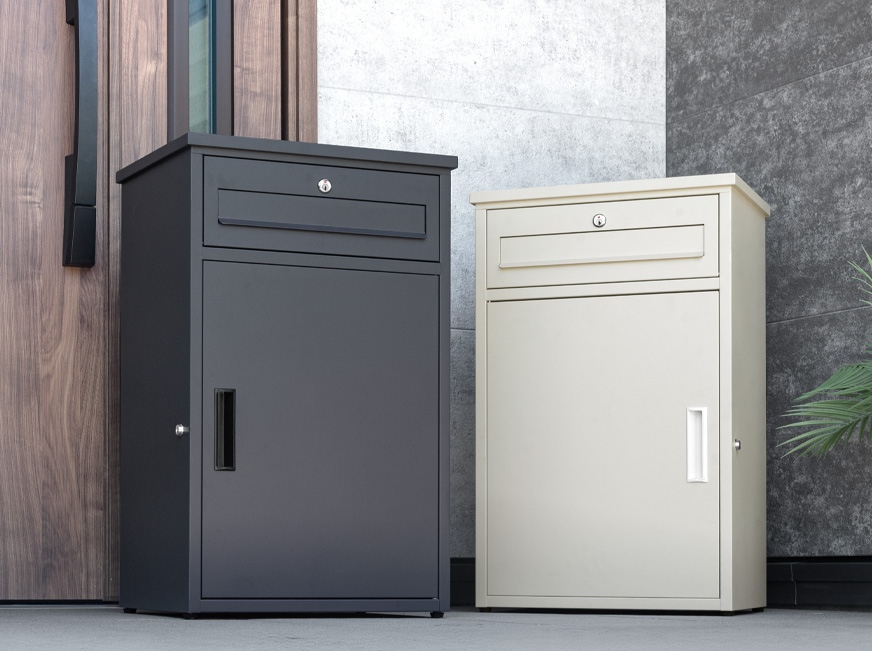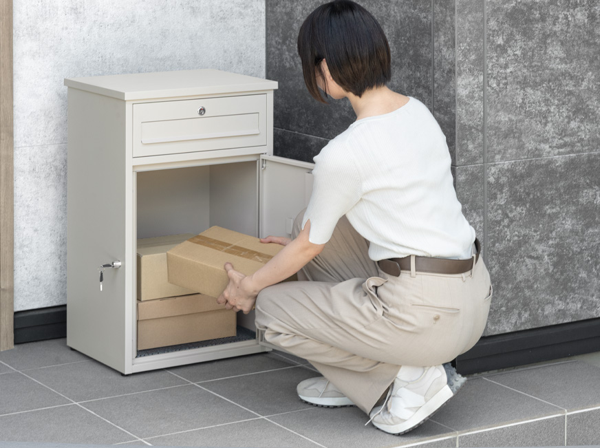 スマートなデザインとサイズ感で、大型の宅配ボックス設置に抵抗のある方でも取り入れやすく、ポスト受け取りの延長としてご使用いただけるラインナップです。