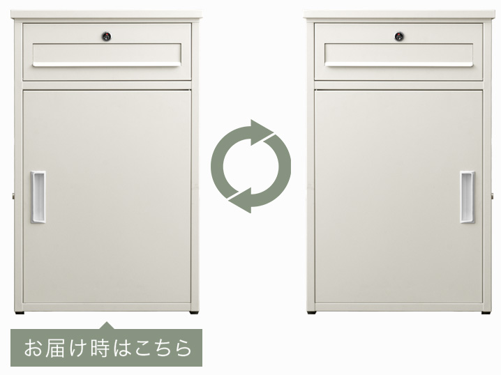 本製品の下扉は、左右どちらの開きにも組み換えてご使用いただくことが可能です。