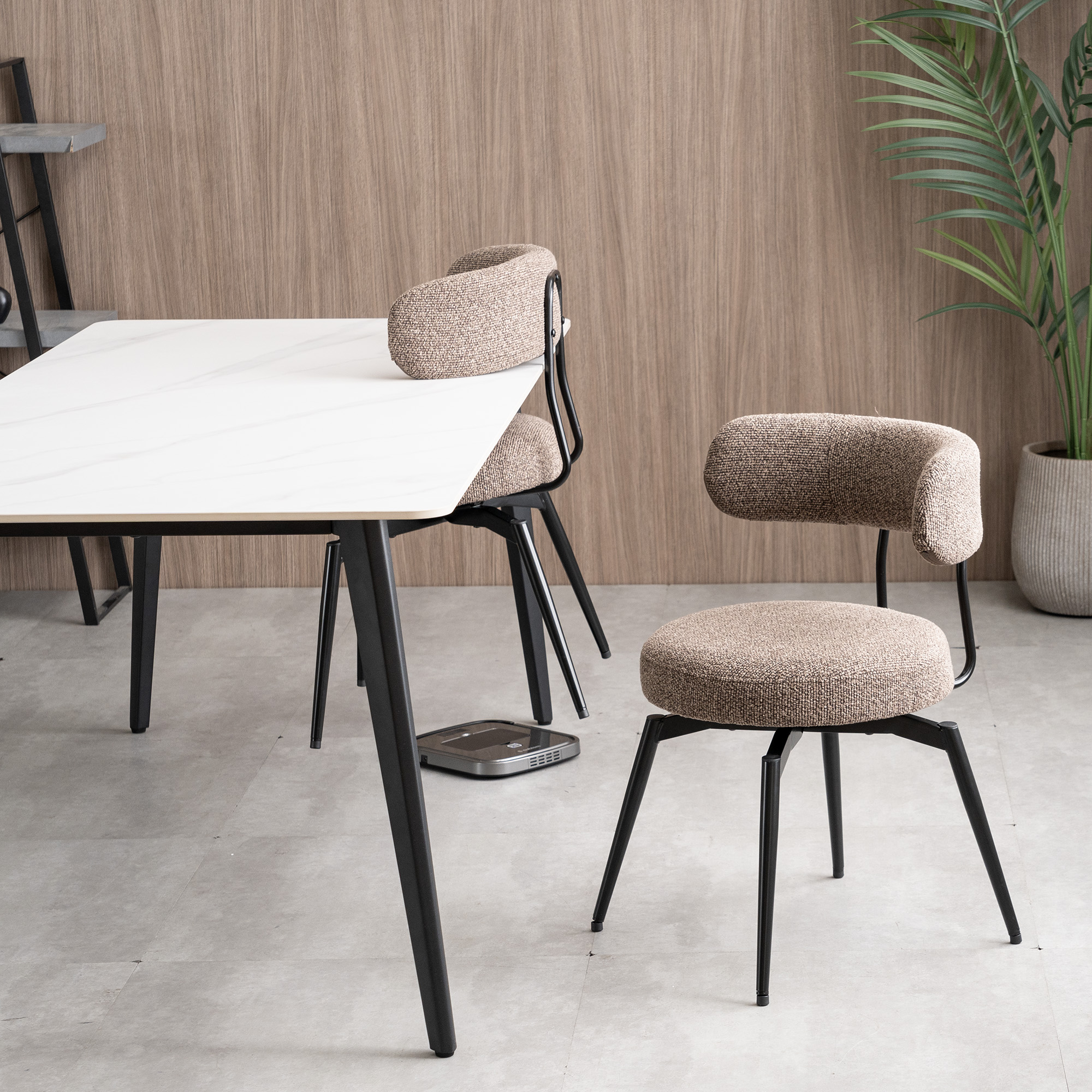 近年、お掃除ロボットの普及にともない対応家具への関心が高まっています。同シリーズは、肘掛けをテーブル天板に掛けるだけで脚を床から離し、掃除ロボットが通れる空間をつくるだけでなく、360度回転式の座面によって立ち座りをよりスムーズにした新発想のダイニングチェアです。