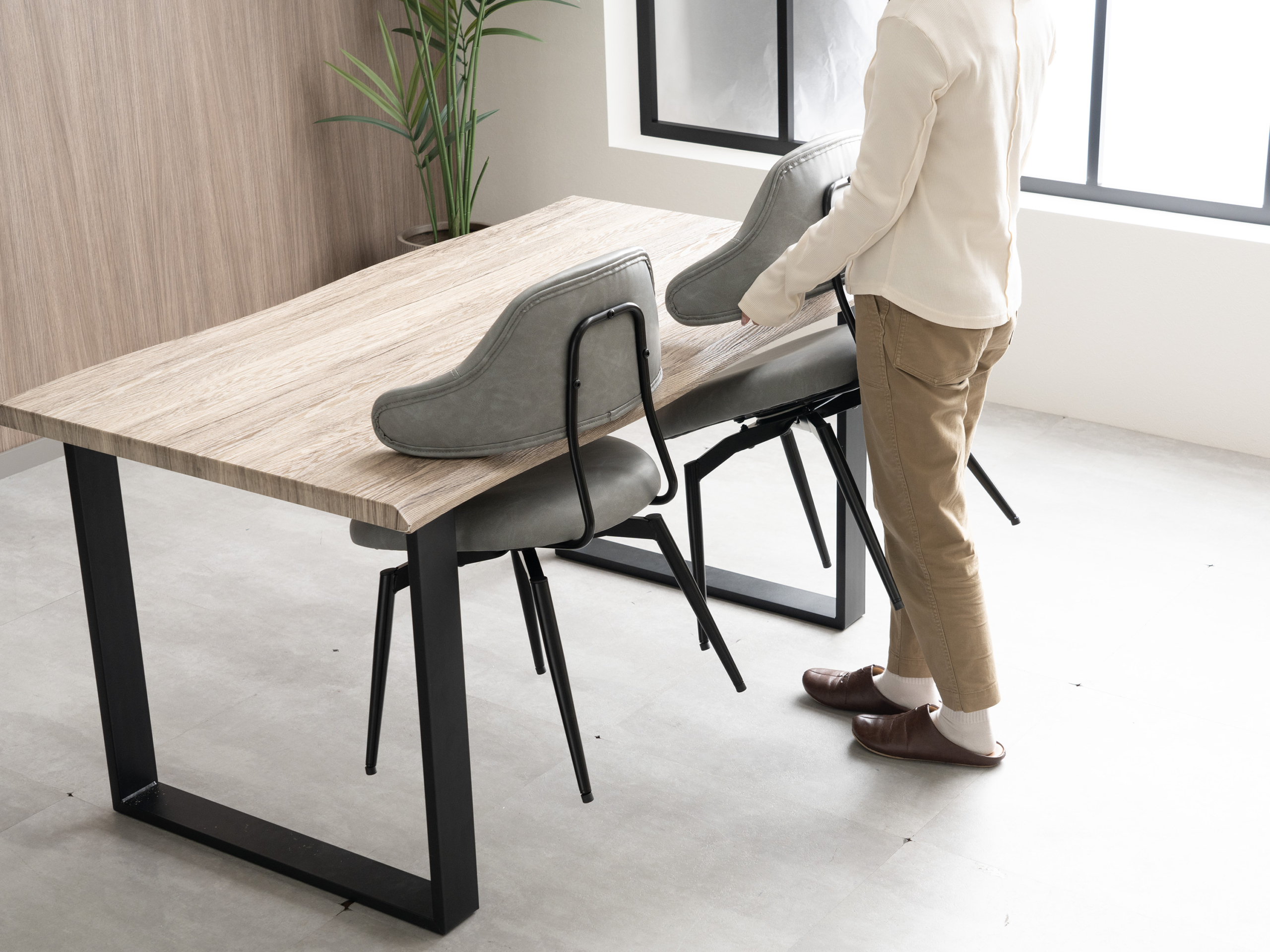 シンプルで使い勝手の良いデザインは、さまざまなダイニングテーブルと相性が良く、複数脚並べても圧迫感がありません。