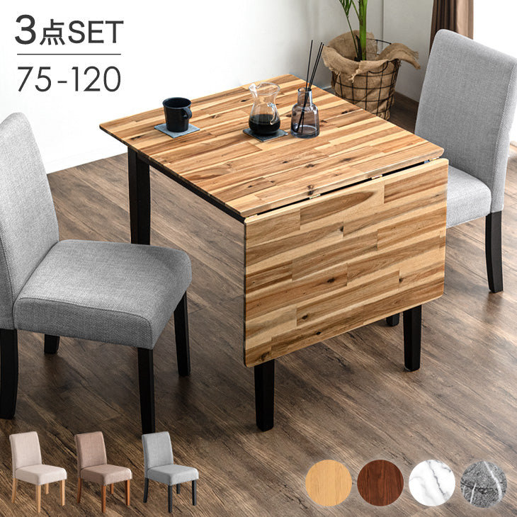 [幅75cm]ファブリック ダイニング3点セット 2人掛け 小さめ 木製〔49600775〕