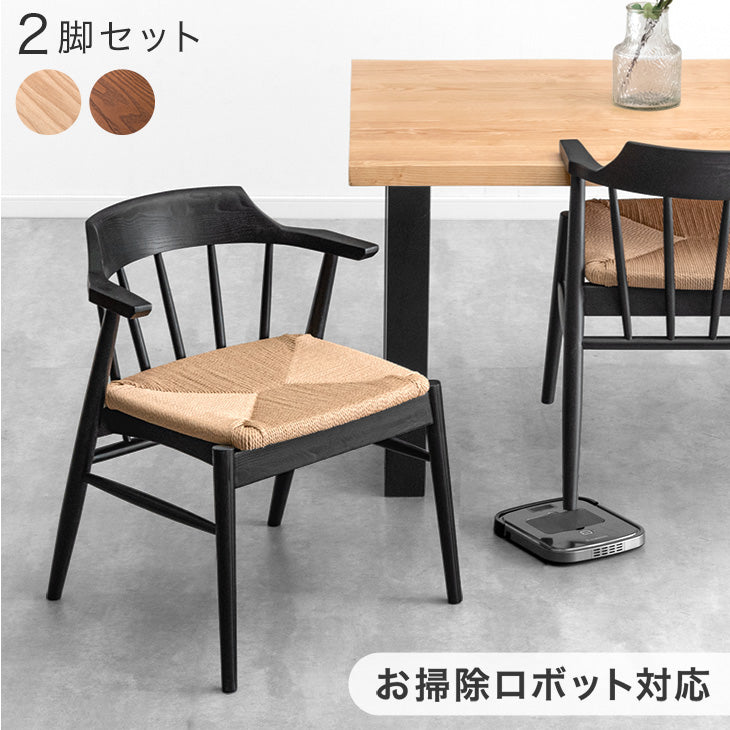 [2脚セット]お掃除ロボット対応 ダイニングチェア 完成品 アッシュ ハンギング 無垢材 ダイニング〔80500076〕
