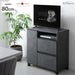 幅80センチでホコリが入らない扉付きのハイタイプのテレビ台を探していました。大きさも色もちょうどよく、満足です。ひきだしも底面裏側中央に添木があり重さに耐えられるようになっていて、スライドレール付きで開閉もスムーズです。
