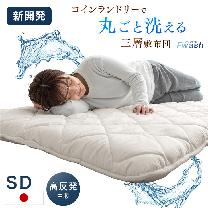[セミダブル]“丸洗い、何度でも” 三層敷布団 高反発中芯 洗濯ネット付き 日本製 洗える テイジン 帝人〔22200059〕
