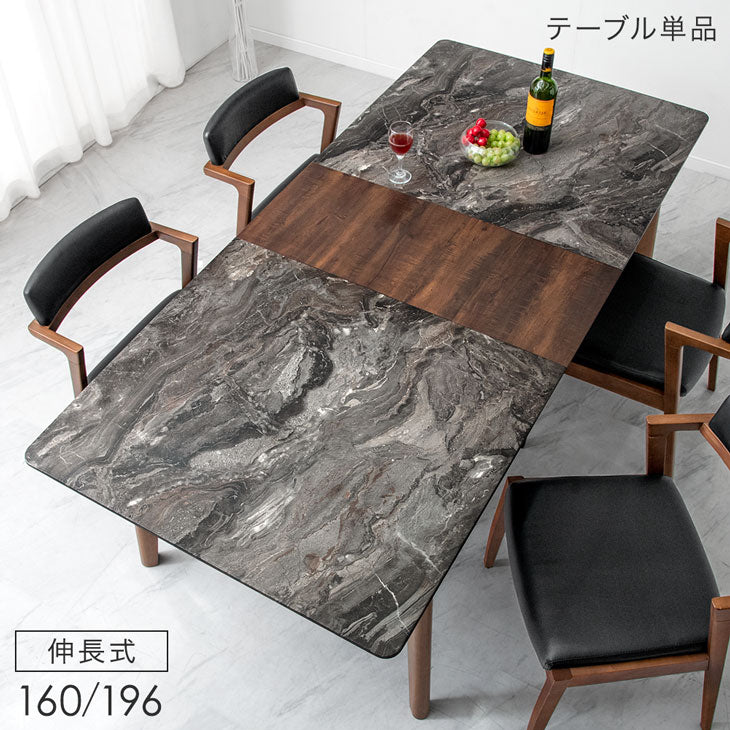[幅160-196]伸長式 ダイニングテーブルセット 5点セット 4人掛け 木製 大理石調 ダイニングチェアセット【超大型商品】〔48100032〕