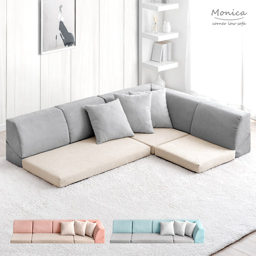 ~ 送料無料 18,999円(税込)現在の価格 送料無料 18,999円(税込)≪レイアウト自由≫ ペールトーン ローソファ クッション 3個セット ズレ防止テープ付き コーナーソファ L字〔15210101〕
