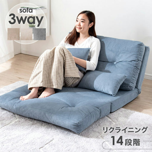 ~ 送料無料 12,999円(税込)現在の価格 送料無料 12,999円(税込)[幅90] 3way ソファーベッド コーデュロイ生地 14段階リクライニング ソファ ローソファ 1人掛け ソファベッド〔15210070〕