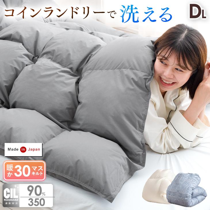 [ダブルロング]日本製 羽毛布団 ホワイトダックダウン90% 30マス立体キルト コインランドリーで洗える 収納ケース付 7年保証 軽い〔10156734〕