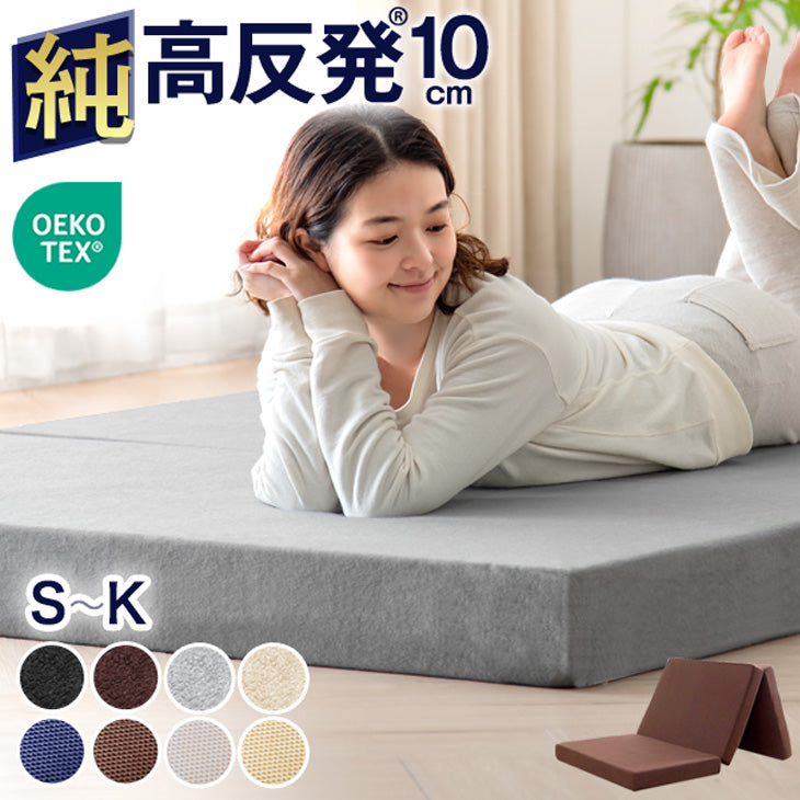 《シリーズ累計200万枚突破》[シングル]「純」高反発マットレス 3つ折りタイプ 厚み10cm 洗えるカバー 折りたたみ エコテックス 〔13810084〕