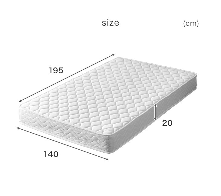※マットレスは柔らかい素材で作られてますので、保存期間中の置き方や運搬の仕方、また測り方によって多少サイズに誤差が生じる場合がございます。予めご了承下さい。。