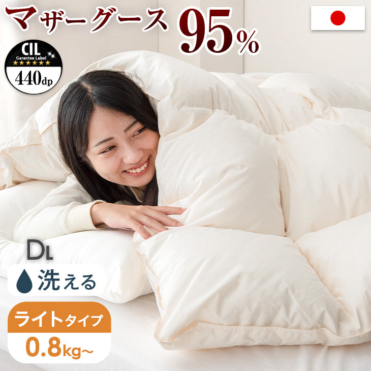 [ダブルロング] コインランドリーで 洗える 羽毛布団 日本製 ホワイト マザーグース 95% 超長綿60サテン 綿100% 440dp 暖かい 0.8kg 軽い 冬用 冬〔19110080〕