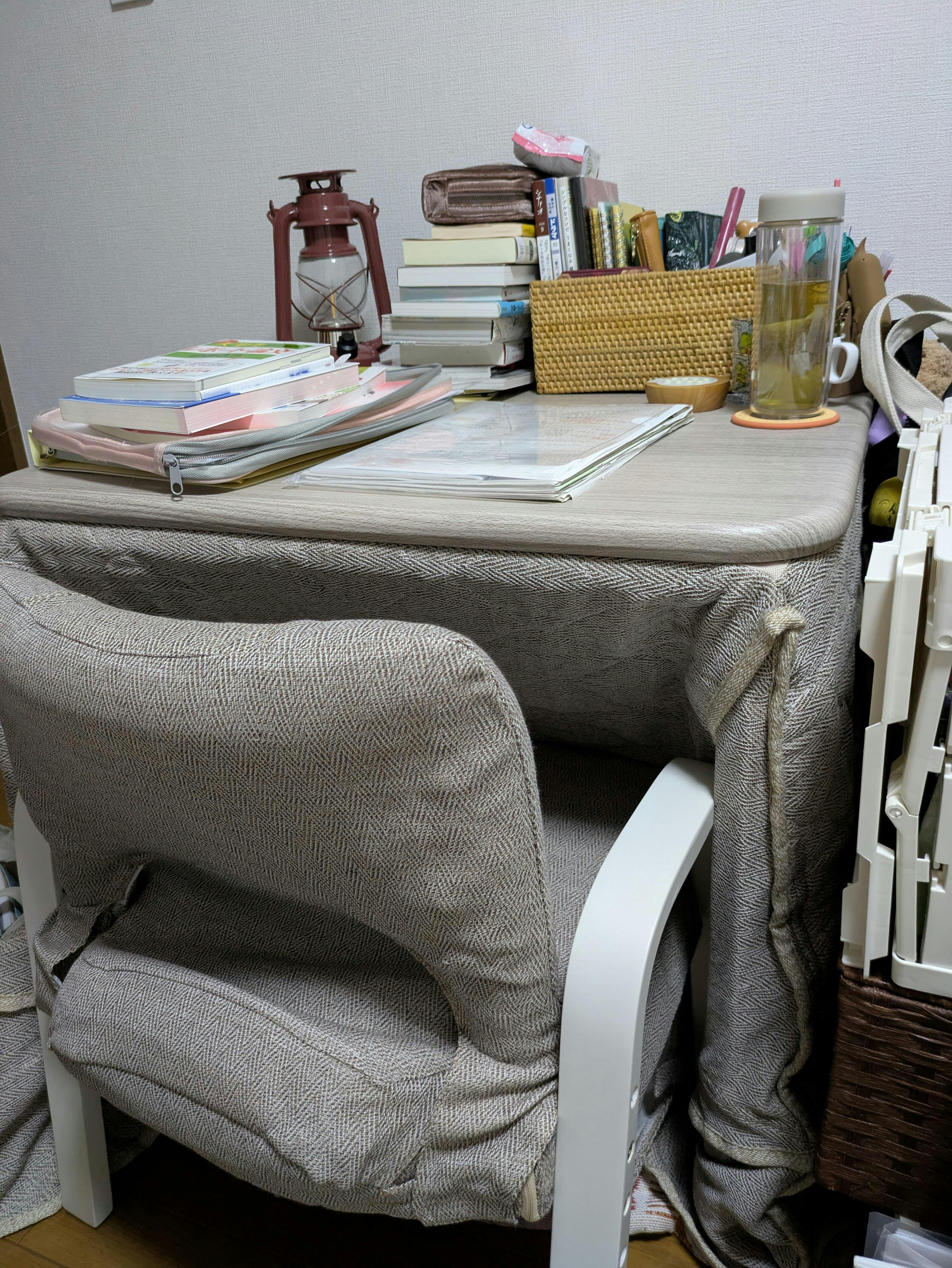 ※2025年10月14日より、こたつ布団の生地をジャガード織りからフランネル生地へリニューアルしました。また、チェアはカバーリング仕様になりました。