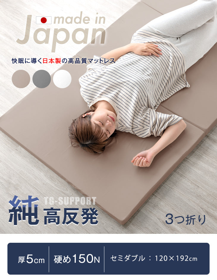 [セミダブル] 高反発マットレス 3つ折り 厚み5cm 日本製〔23300038〕