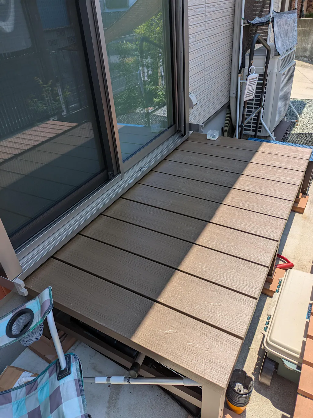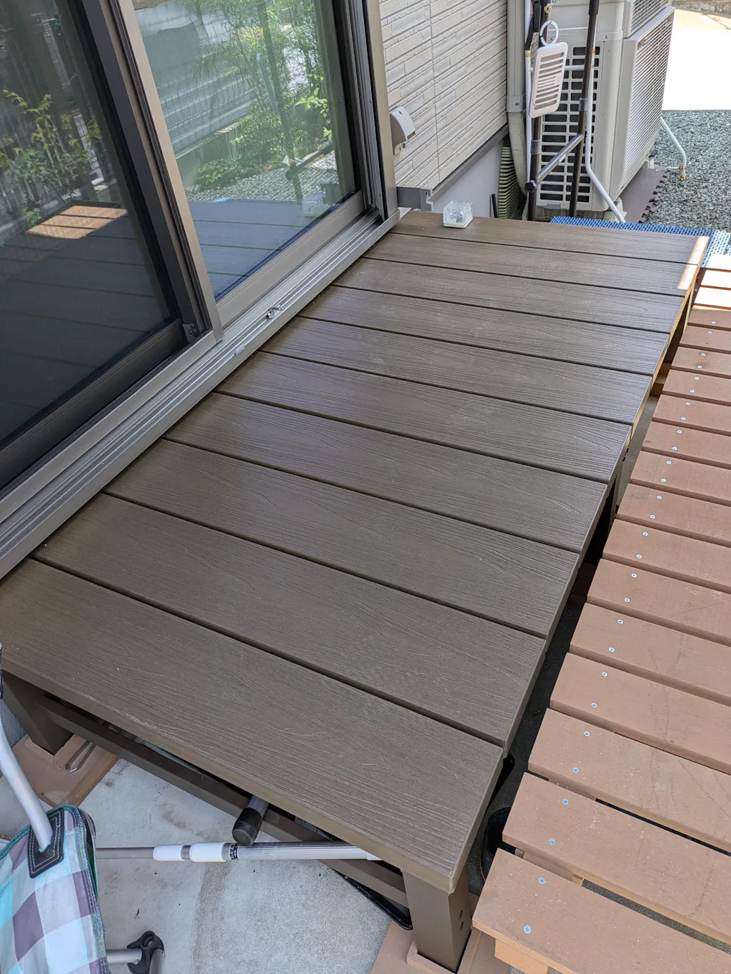 簡単設置 ウッドデッキ 人工木 樹脂 超耐久 ガーデニング シンプル 縁側 0.5坪用 ベンチ〔42310016〕