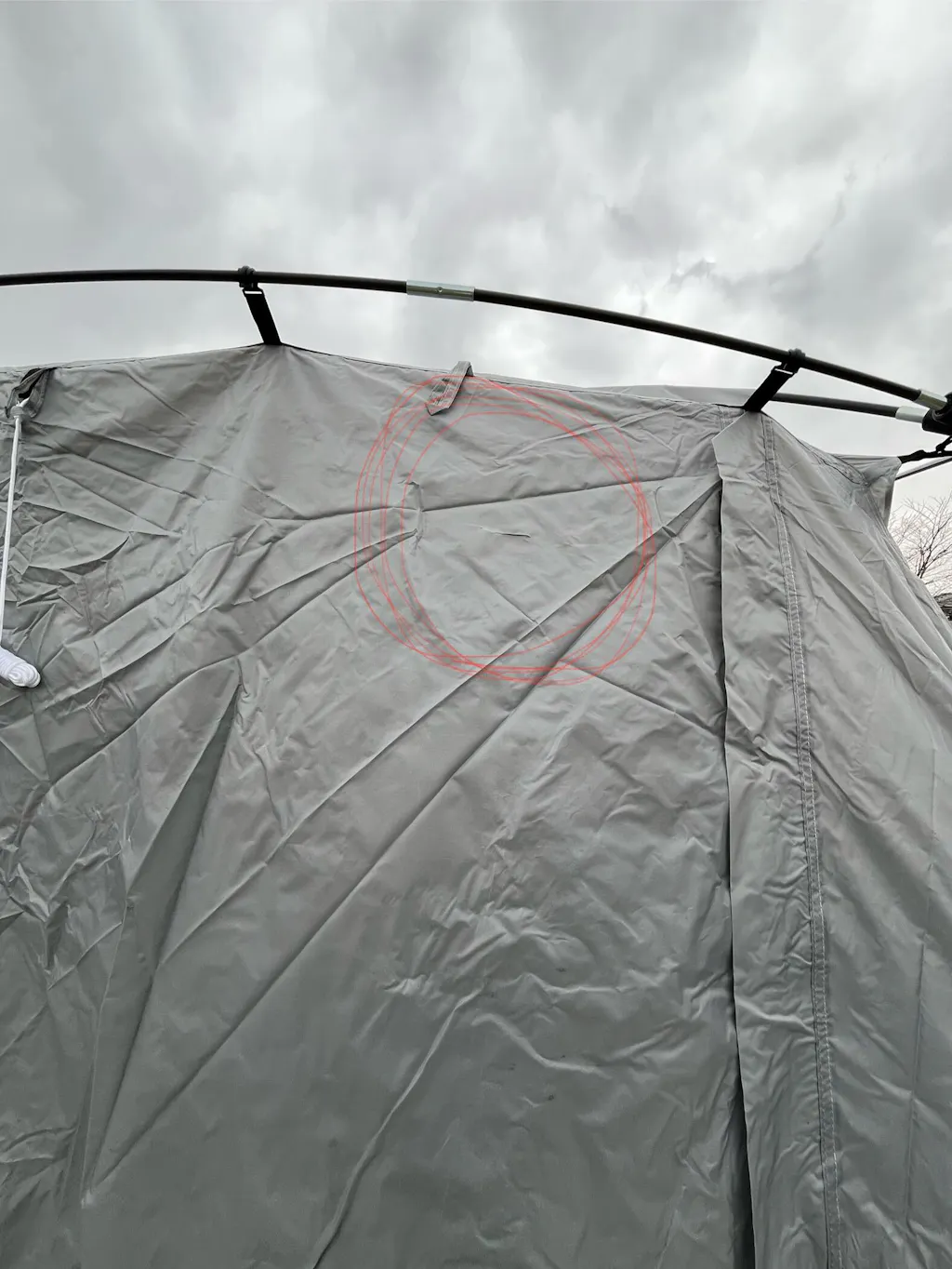 ※風向きにより倒れる場合がございますので、風向きをご確認の上、平らな場所に付属のペグでしっかりと固定して使用してください。