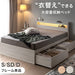 【新発売記念プライス】[シングル]大容量 収納ベッド ライト付 宮付 USBコンセント 引き出し収納 木製 北欧 おしゃれ ベッド〔49600361〕