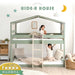 【アウトレット 撮影品】屋根付き 二段ベッド 天然木 垂直はしご 角丸設計 北欧 キッズベッド HIDE-A HOUSE【玄関渡し】【超大型商品】〔4960038601out・out2764〕