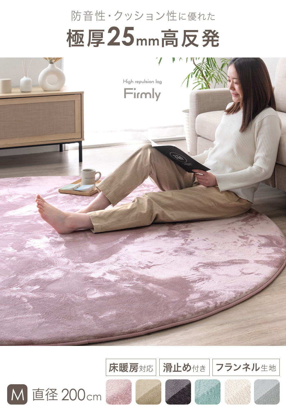 [直径200]円形 高反発ラグ 極厚25mm フランネル 防音 滑り止め付 床暖房対応 〔61100111〕