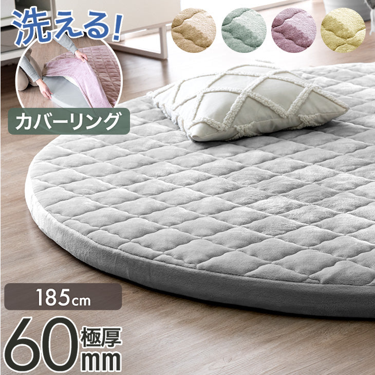 [185cm] 超極厚60mm 洗える カバーリングラグ 円形 ラグマット 高反発 フランネルラグ カバーリング ホットカーペット対応 絨毯 防音 抗菌 防臭 防ダニ〔61100121〕