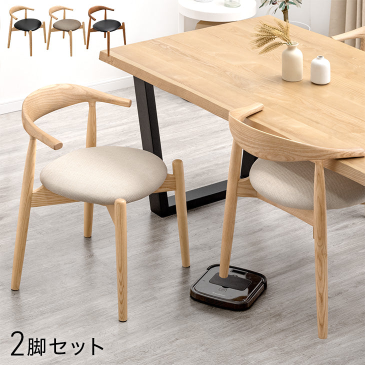 [2脚セット]お掃除ロボット対応 ダイニングチェア 完成品 肘付き ハンギング 木製 PVC ファブリック おしゃれ 天然木 無垢材〔80500082〕