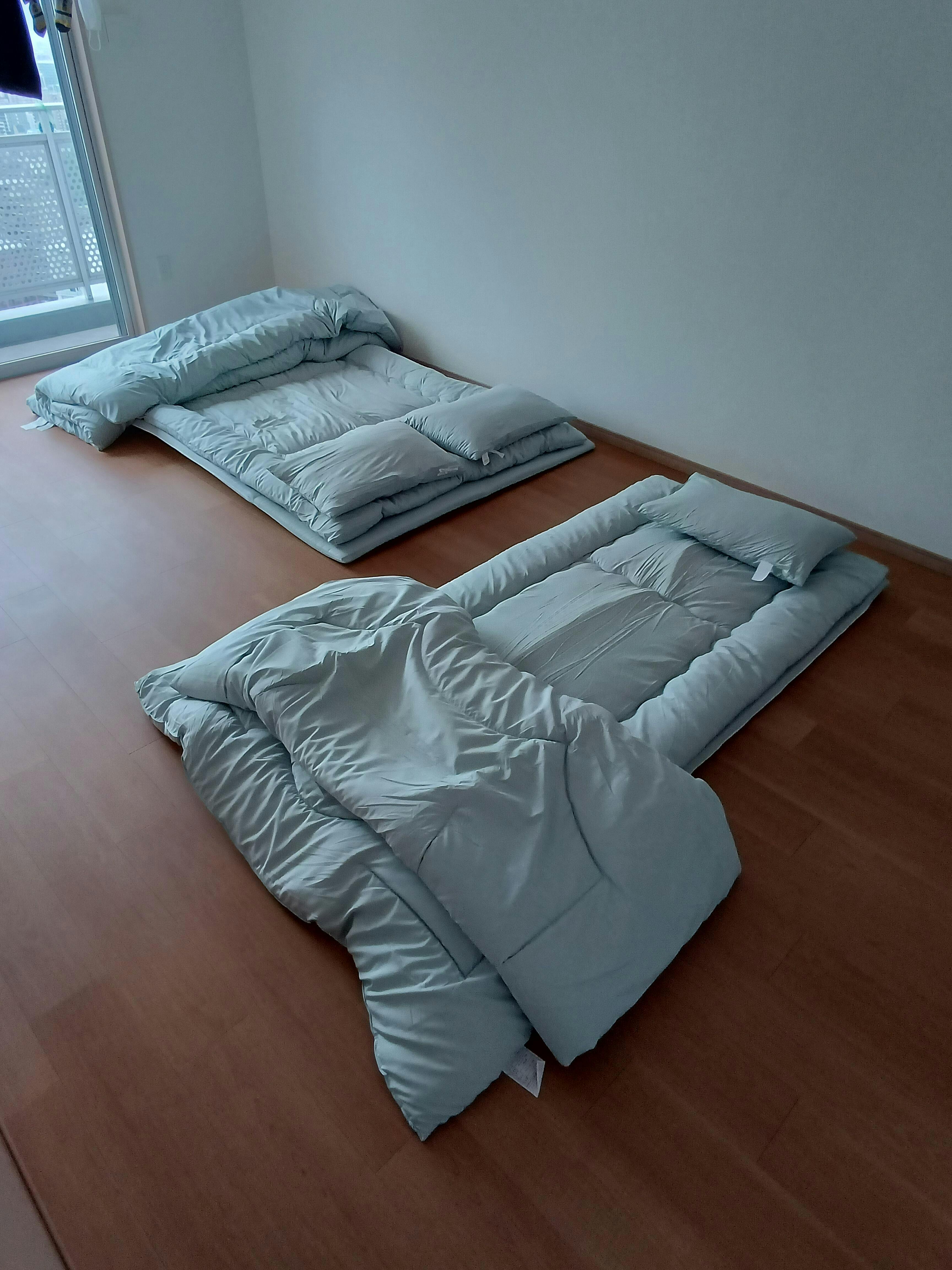 ※掛け布団・敷布団は圧縮梱包にてお届けしております。手で軽く綿をほぐし、天日干ししていただくことでより早くふんわりと復元します。