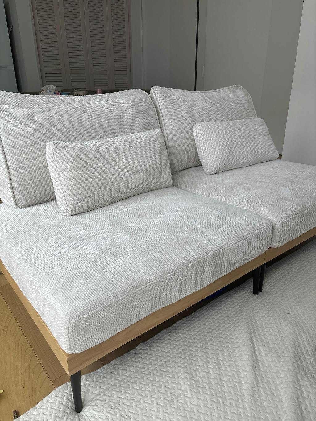 組み換えOK 洗える カバーリング ソファ 3人掛け クッション ソファベッド フロアソファ ラタン調 ファブリック木枠 〔82500028〕