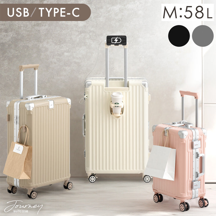 ≪ひるおびで紹介≫ 多機能キャリーケース Mサイズ 60L USB type-c カップホルダー スーツケース おしゃれ 可愛い〔84200003〕