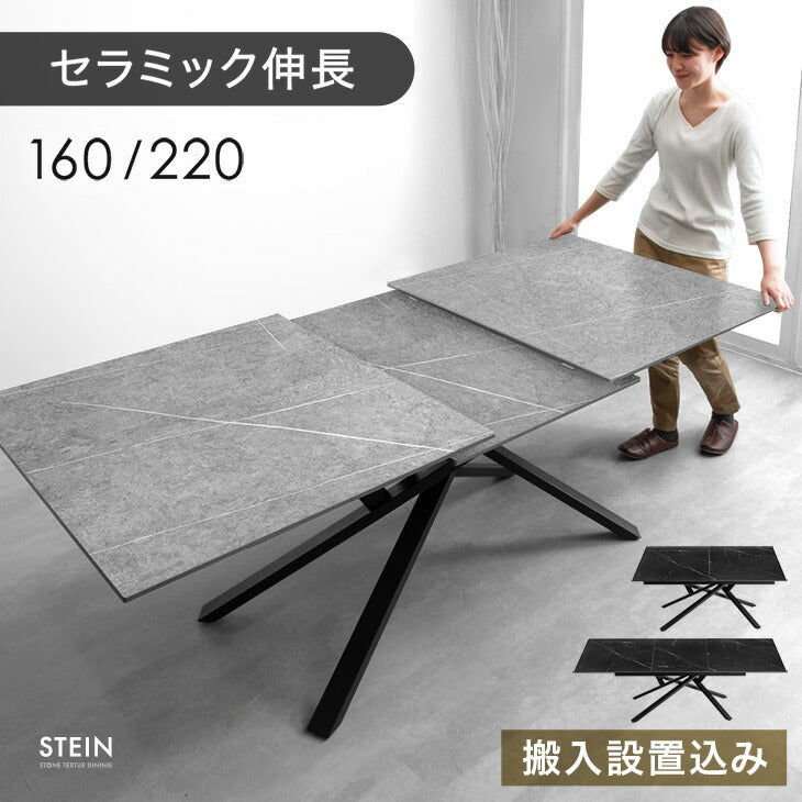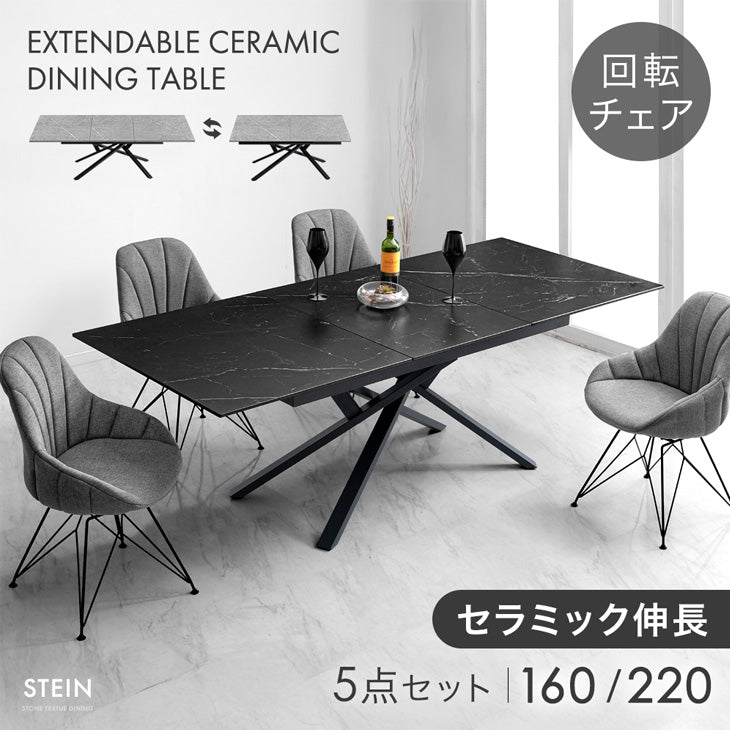 [幅160 220]【玄関渡し】セラミック 伸長式 ダイニングセット 5点セット 4人掛け 折りたたみ 折り畳み 長方形 回転椅子【超大型商品】〔84410004〕