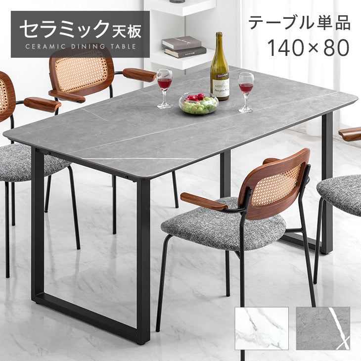 [幅140]【玄関渡し】お掃除ロボット対応 ダイニングテーブルセット 5点セット セラミック 4人掛け 天然木 チェア 大理石調【超大型商品】〔84410010〕