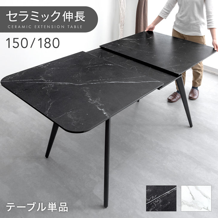 [幅140/180]【玄関渡し】伸長式 ダイニングテーブルセット セラミック 5点セット 4人掛け エクステンション 長方形 伸長【超大型商品】〔85410001〕