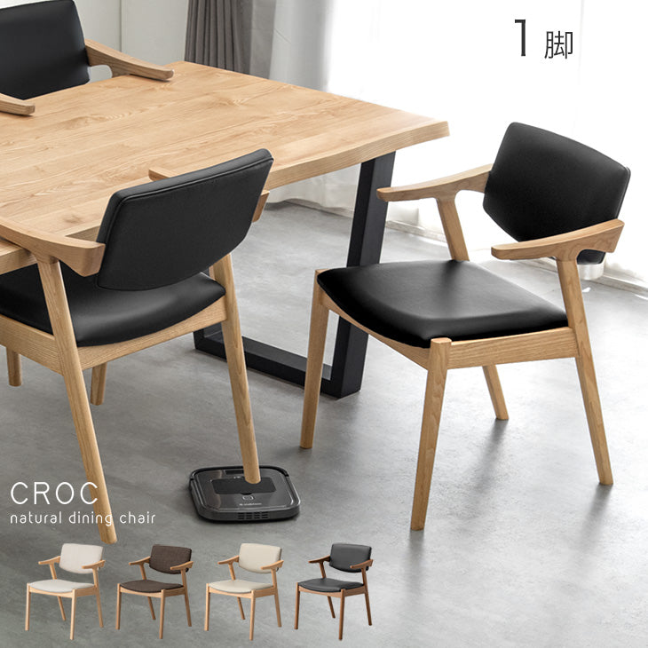 [単脚]お掃除ロボット対応 北欧 ダイニングチェア 肘付き アッシュ 無垢材〔86001003〕