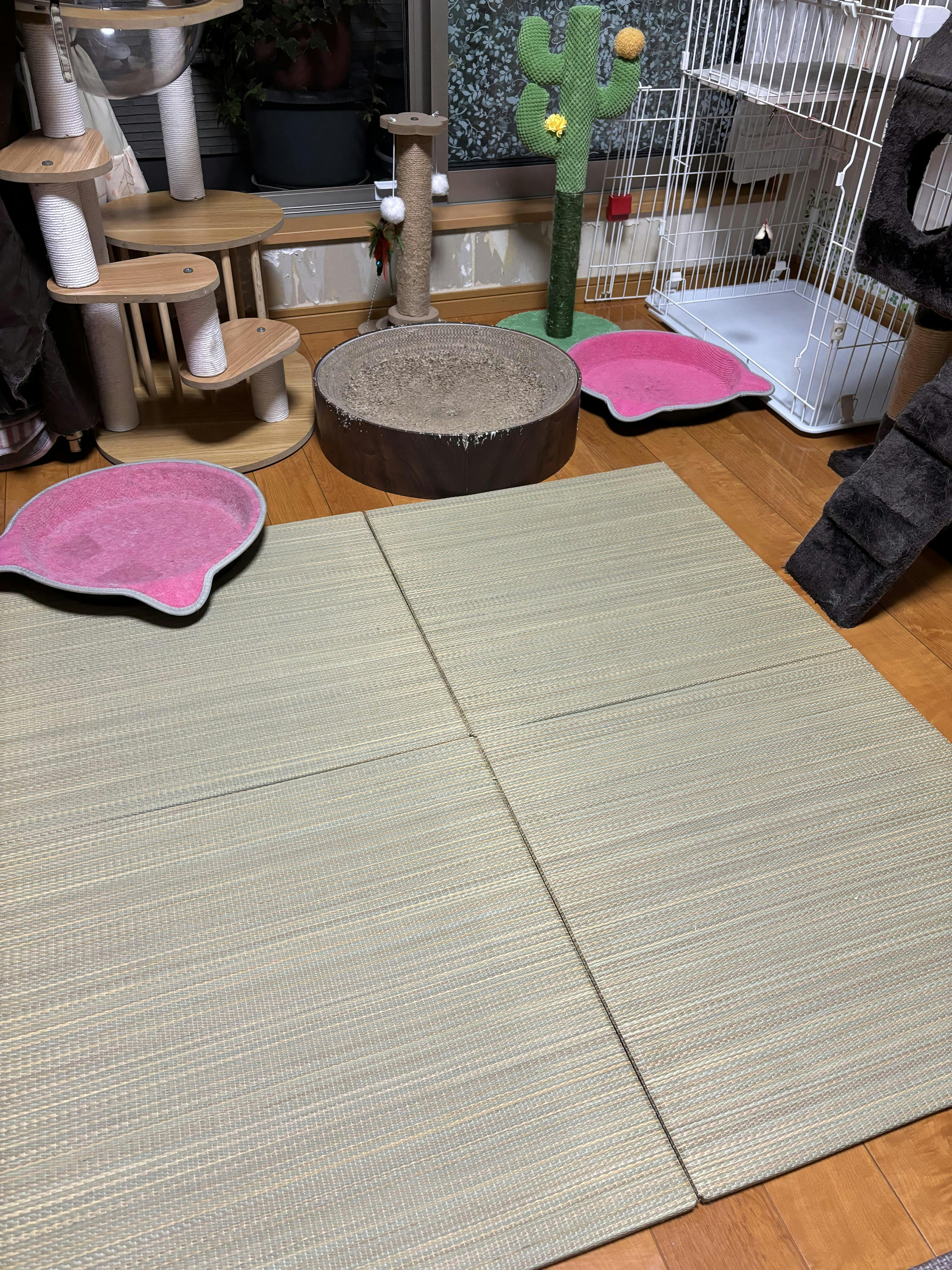 光の当たり具合により色の見え方が変化します。 天然のい草を使用しているため1つ1つ色味・形状・サイズが異なる場合がございます。また厚みについては加工の関係上、端と中央で2~3mmの差が生じる場合がございます。あらかじめご了承ください。