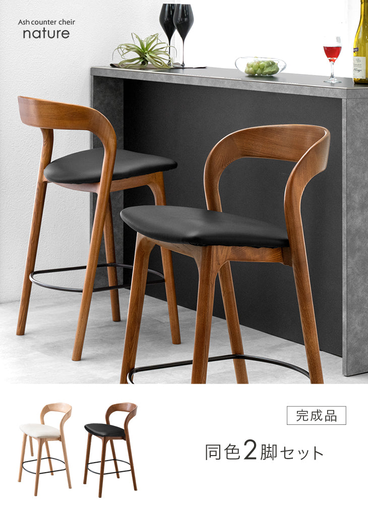 [2脚セット]天然木アッシュ 曲木 カウンターチェア 完成品 背もたれ ハイチェア 木製 カフェ カウンター おしゃれ 北欧〔99900411〕